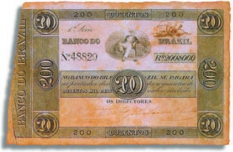 – 200.000 Réis (lançada em 1835, teve 6 estampas). A quarta, de 1867, possuía somente a face, com D. Pedro II nos cantos superior esquerdo e inferior direito, bem como a Alegoria da Justiça ao centro.